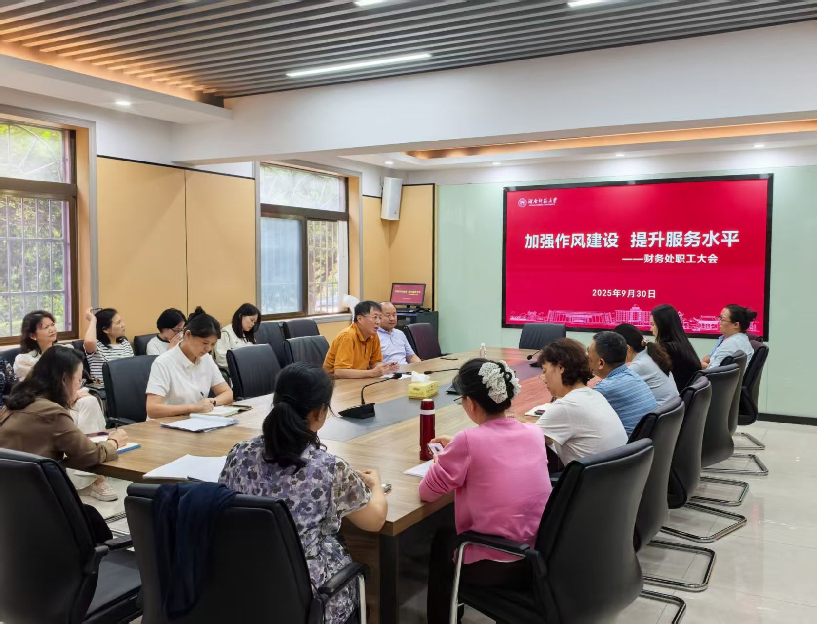 为进一步加强作风建设、提升服务水平,2025年9月30日下午,财务处在一楼会议室召开全处职工大会,财务处处长匡尹俊主持会议并讲话。